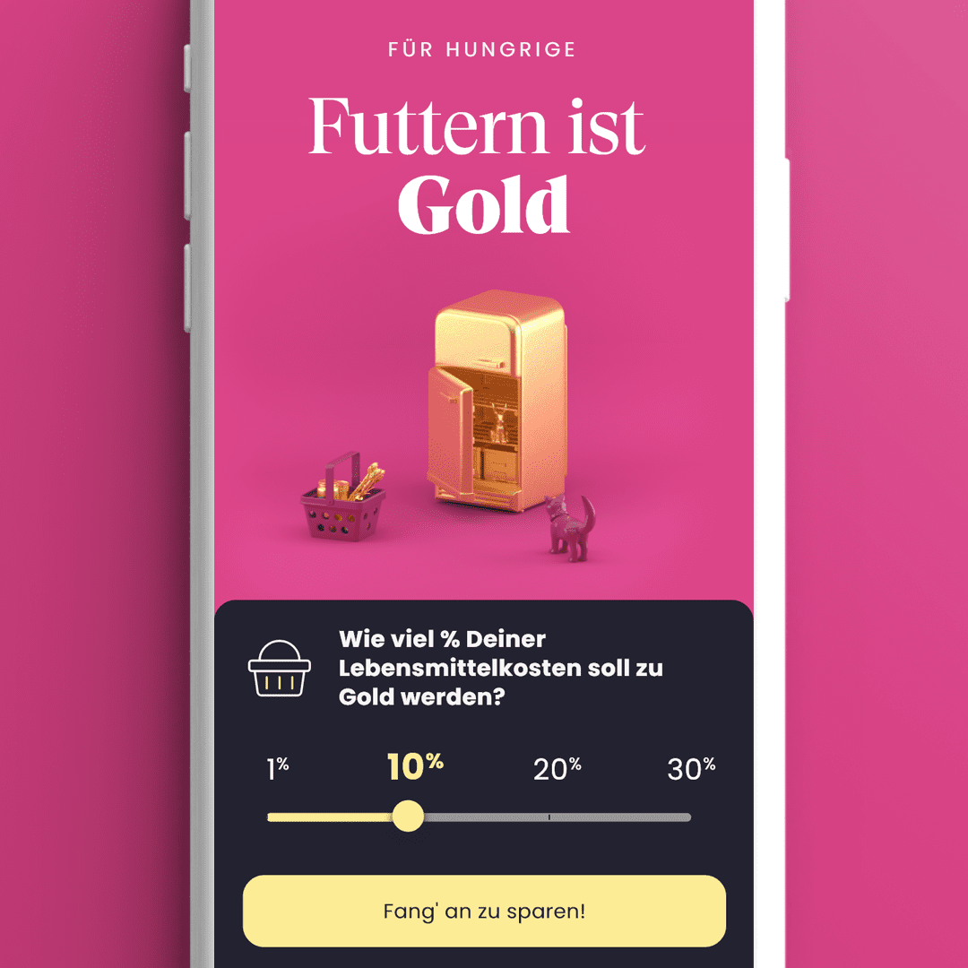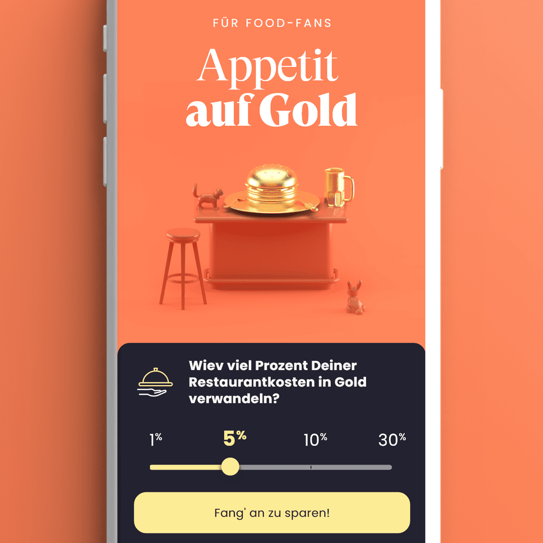 For the pilot launch of the Ausome app on German and Austrian markets, we’ve prepared communication assets, focusing on a few of our product’s USPs – the fact that Ausome is providing physical gold to users and its unique saving plans.